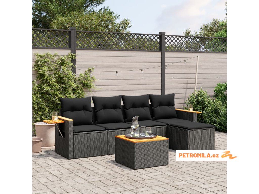 6dílná zahradní sedací souprava s poduškami černá polyratan