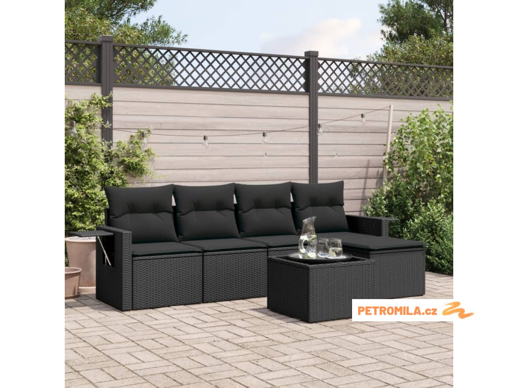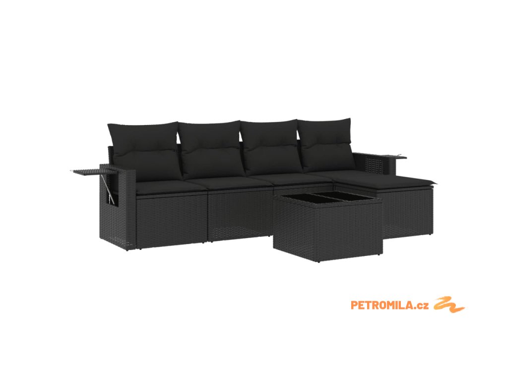 6dílná zahradní sedací souprava s poduškami černá polyratan