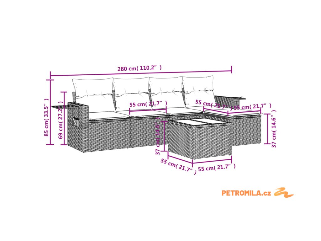 Sada zahradních pohovek s polštářem 6 pcs Béžová Poly ratan