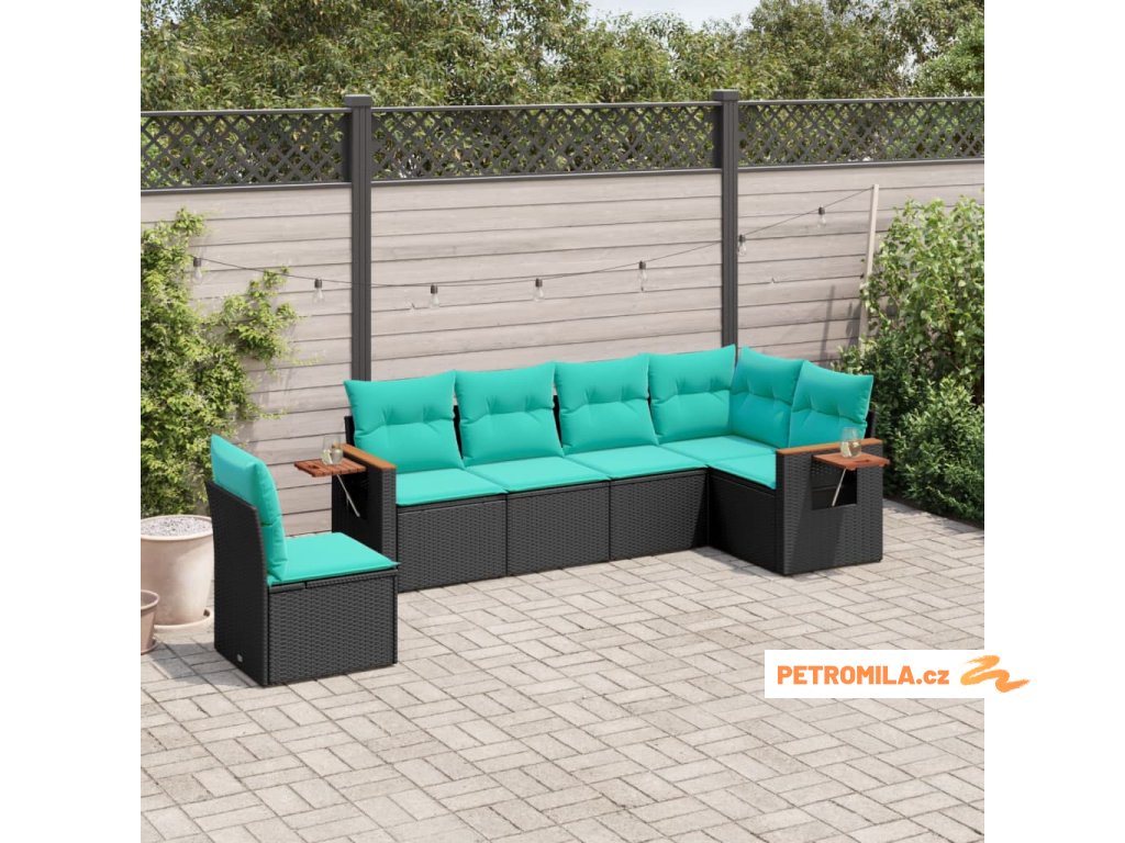 6dílná zahradní sedací souprava s poduškami černá polyratan