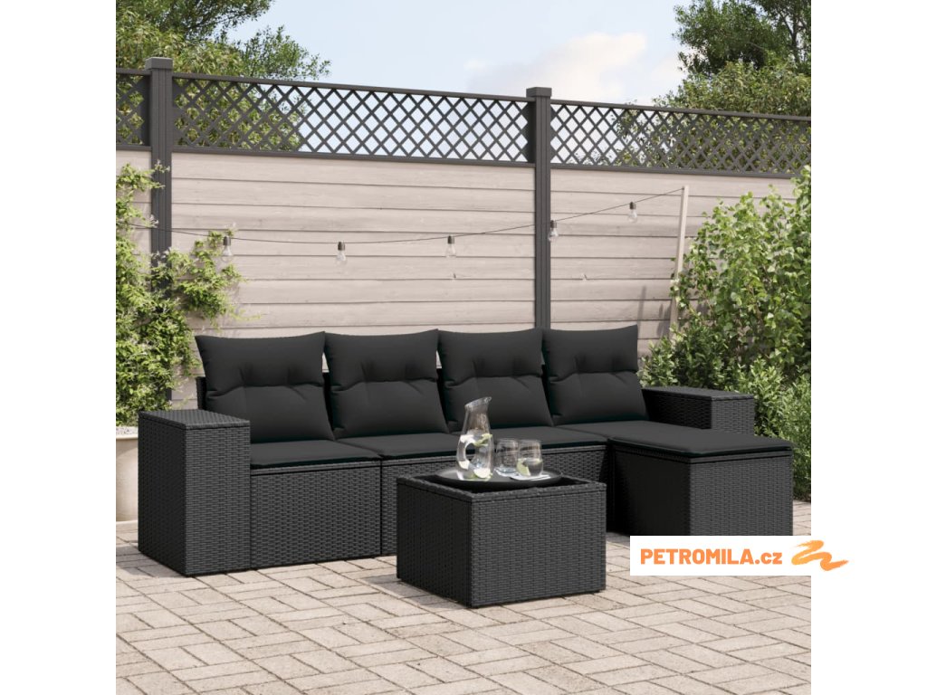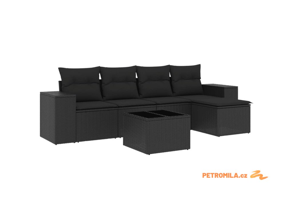 6dílná zahradní sedací souprava s poduškami černá polyratan