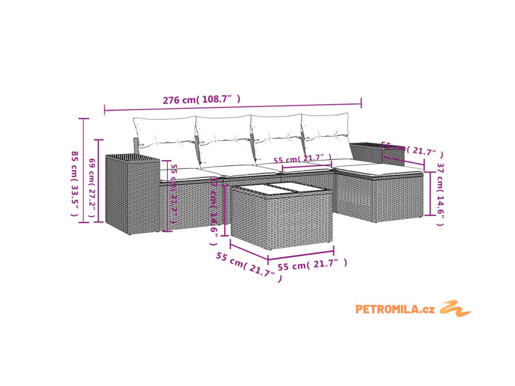 Tato zahradní sedací souprava je dokonalým doplňkem vaší zahrady, terasy nebo dvorku a poskytne vám pohodlné a příjemné místo, kde si můžete povídat s rodinou a přáteli nebo jen tak odpočívat a užívat si pobyt venku.
