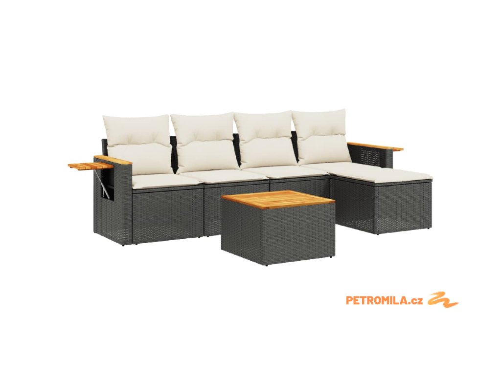 6dílná zahradní sedací souprava s poduškami černá polyratan