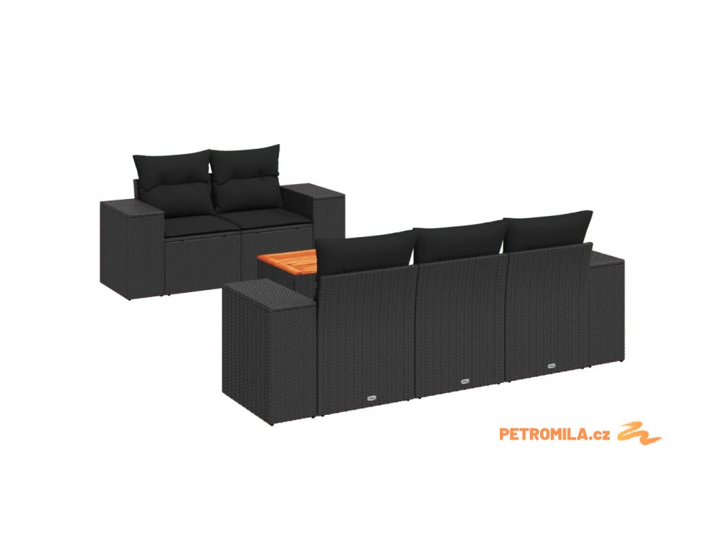 6dílná zahradní sedací souprava s poduškami černá polyratan
