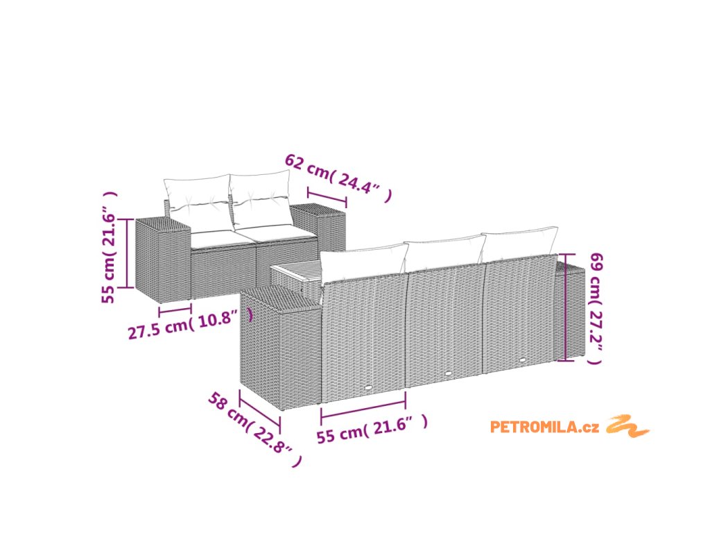 Sada zahradních pohovek s polštářem 8 pcs Béžová Poly ratan