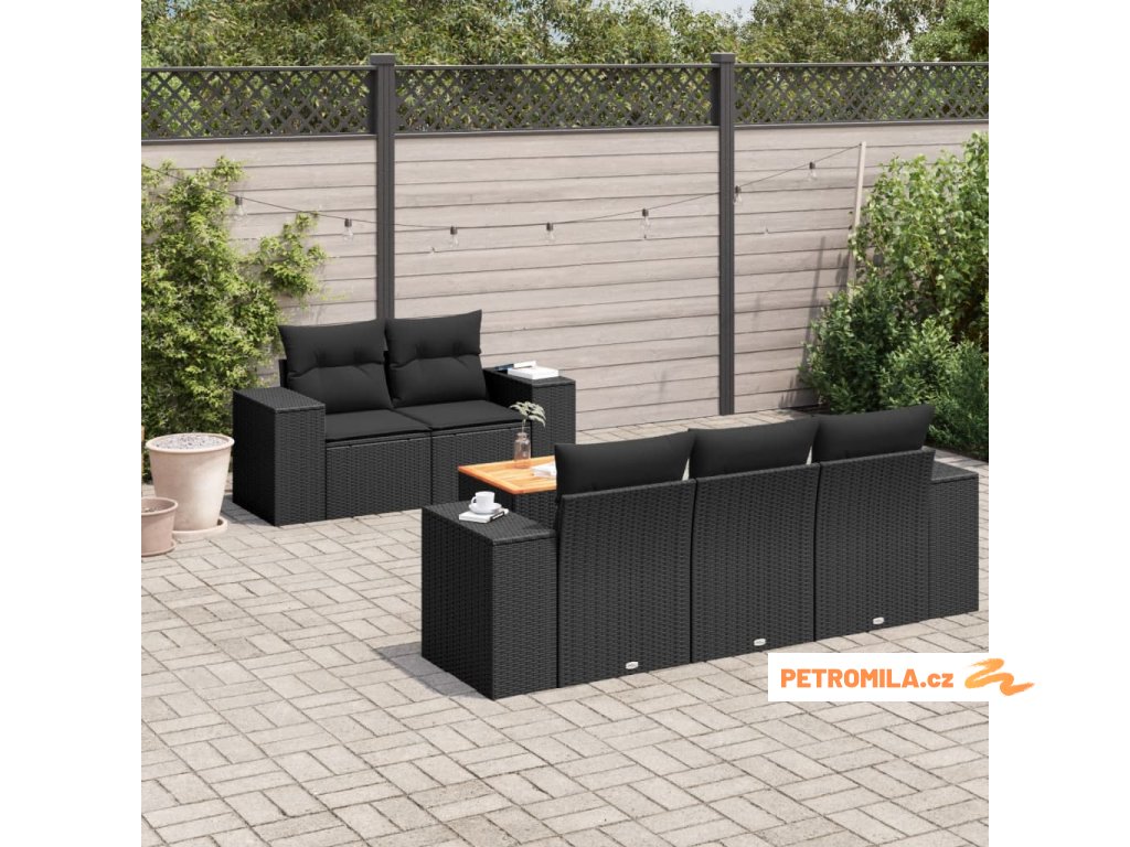 Sada zahradních pohovek s polštářem 6 pcs Černá Poly Ratan