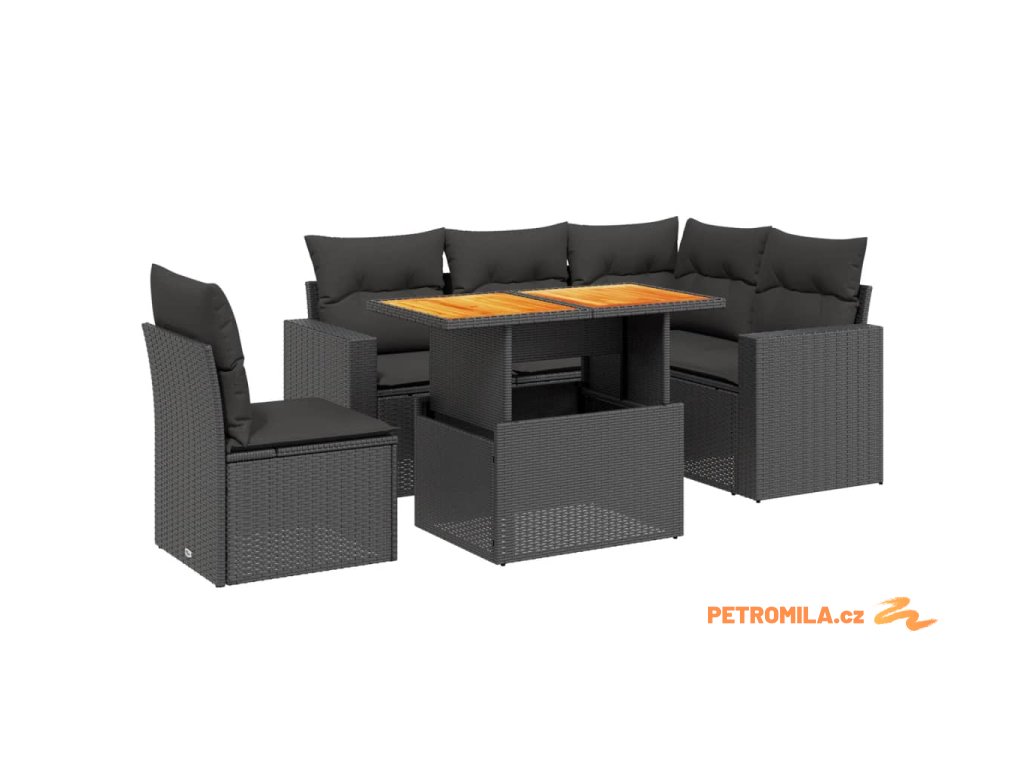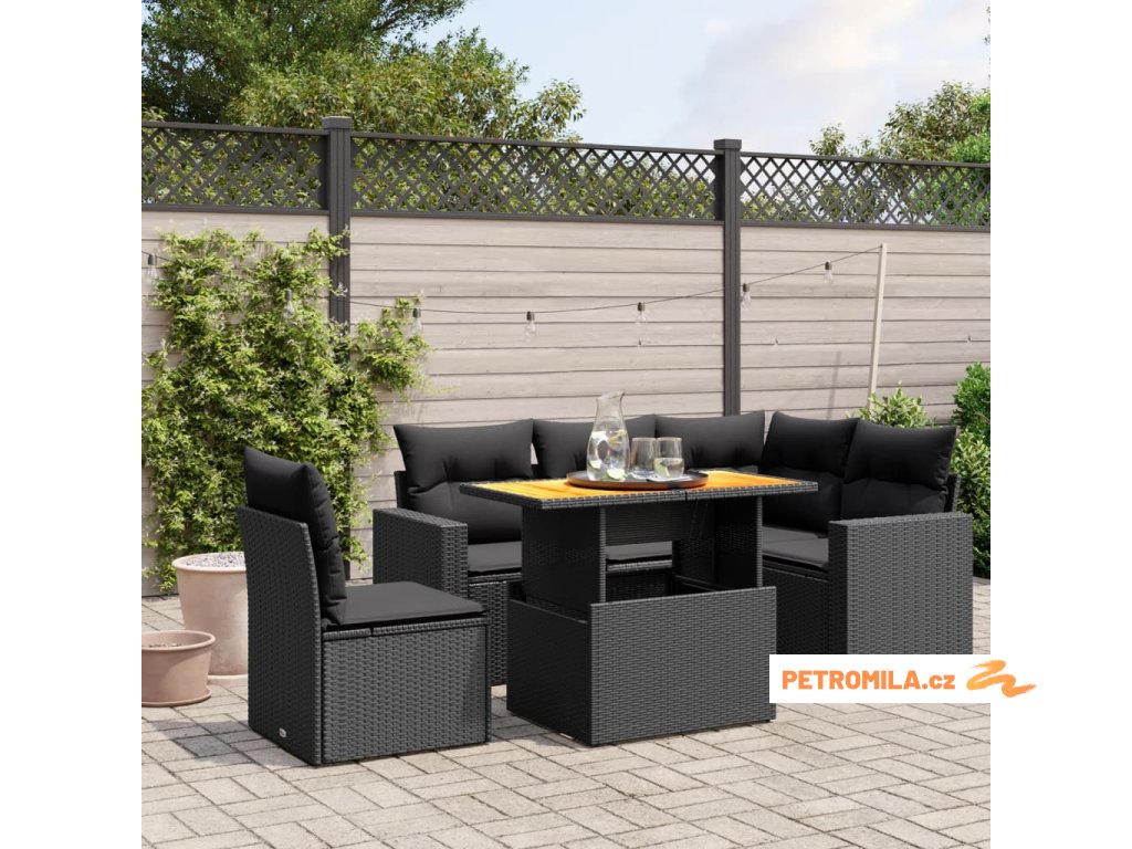6dílná zahradní sedací souprava s poduškami černá polyratan