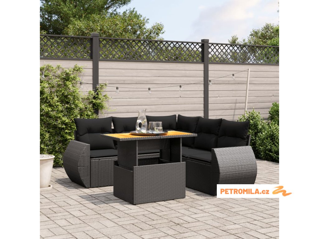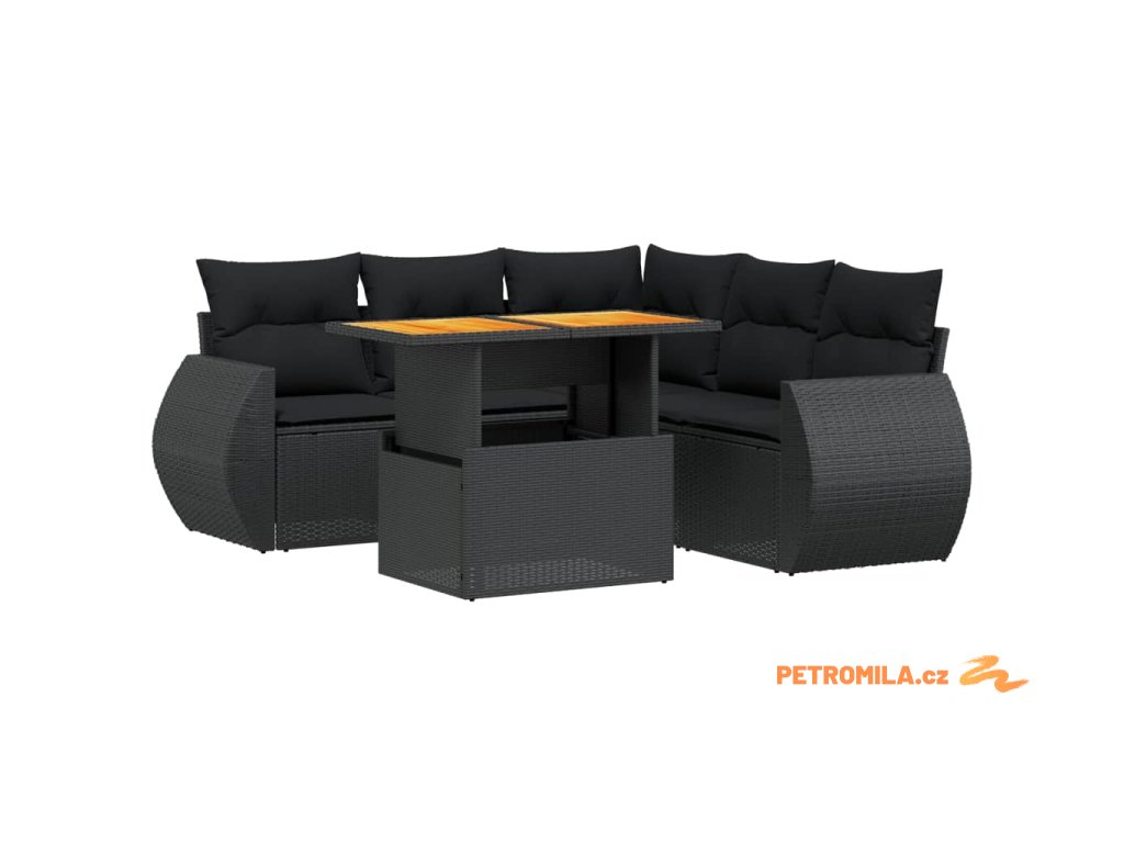 6dílná zahradní sedací souprava s poduškami černá polyratan