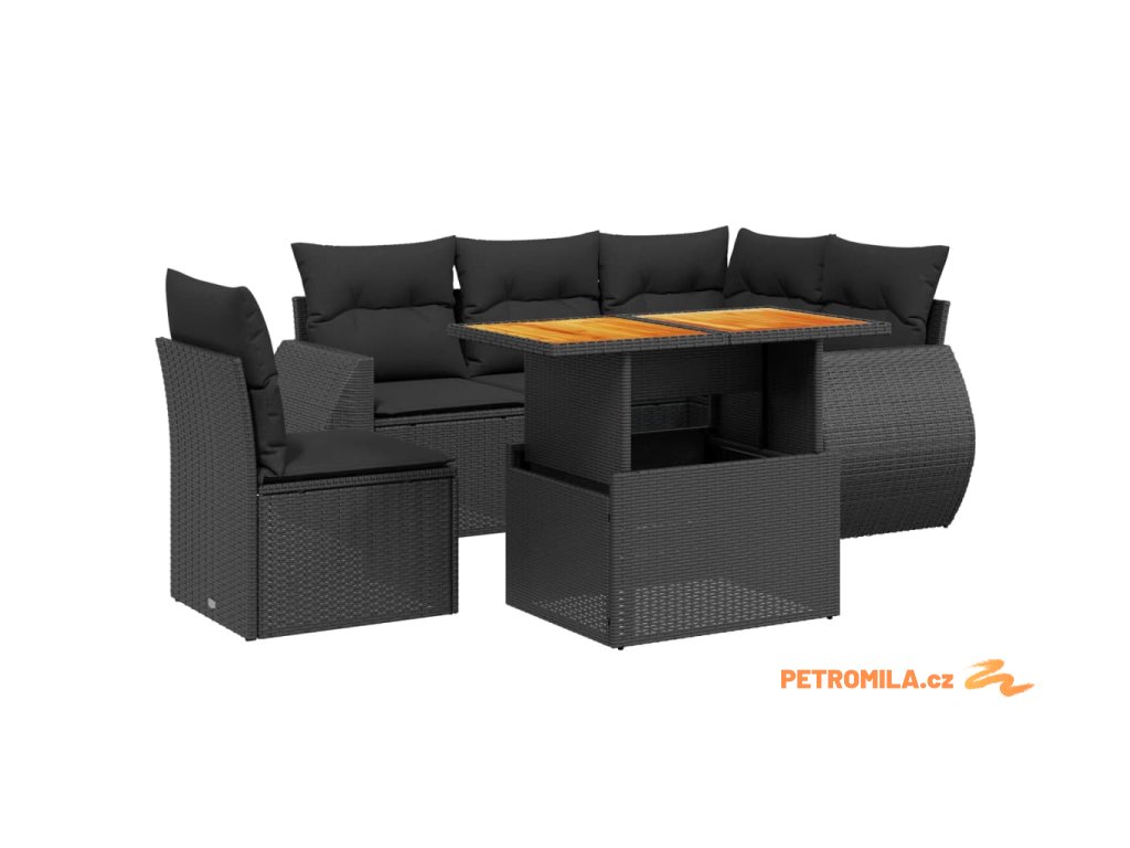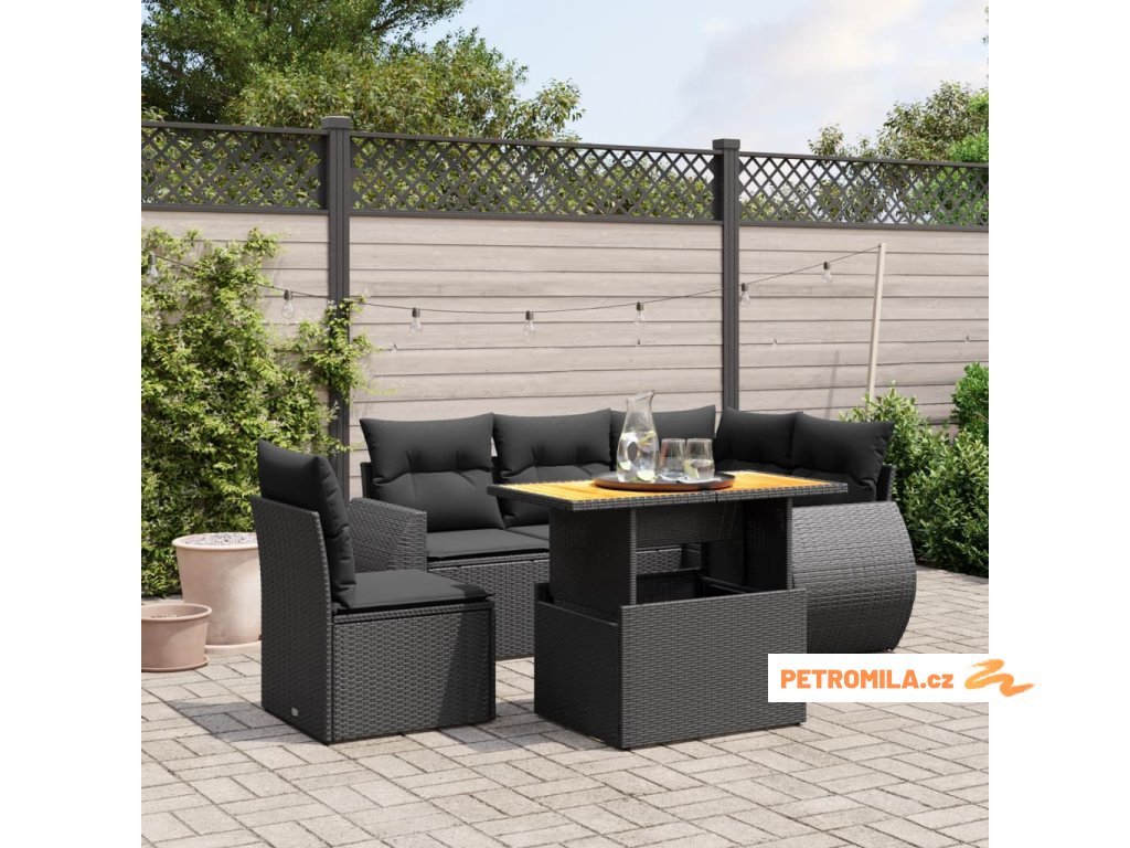 6dílná zahradní sedací souprava s poduškami černá polyratan