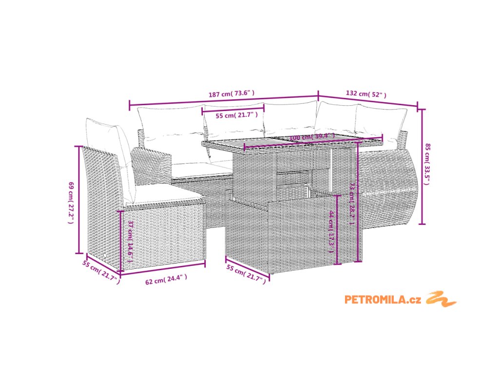 Tato zahradní sedací souprava je dokonalým doplňkem vaší zahrady, terasy nebo dvorku a poskytne vám pohodlné a příjemné místo, kde si můžete povídat s rodinou a přáteli nebo jen tak odpočívat a užívat si pobyt venku.