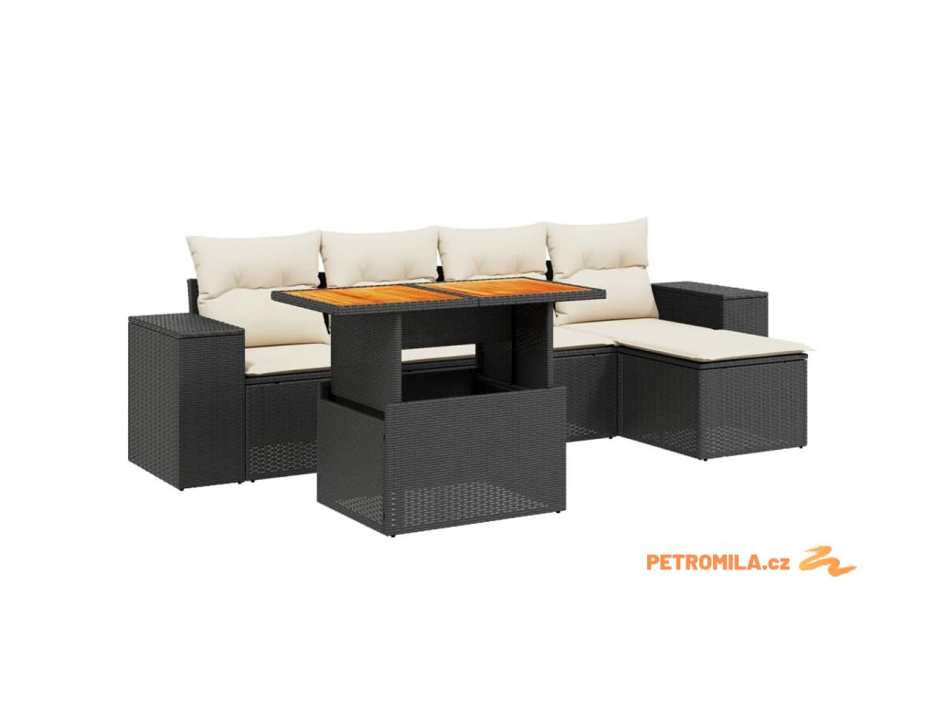6dílná zahradní sedací souprava s poduškami černá polyratan