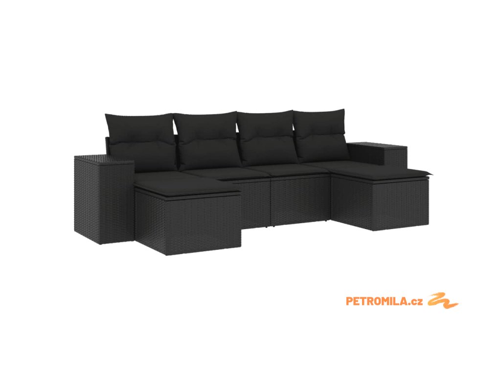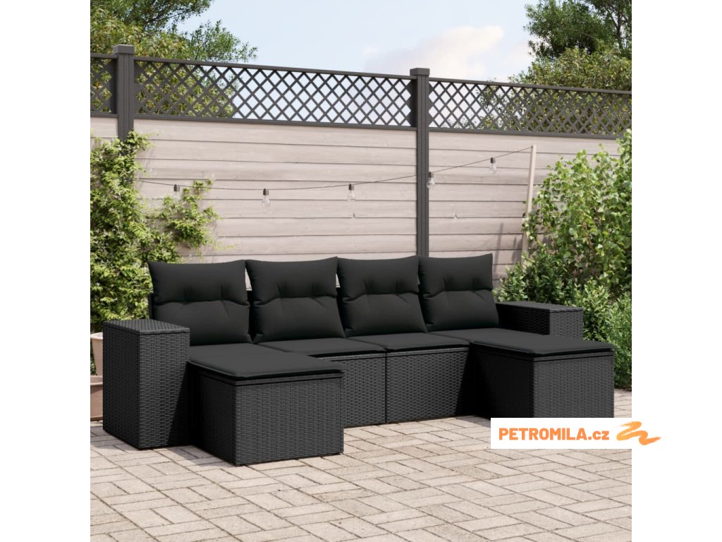 6dílná zahradní sedací souprava s poduškami černá polyratan