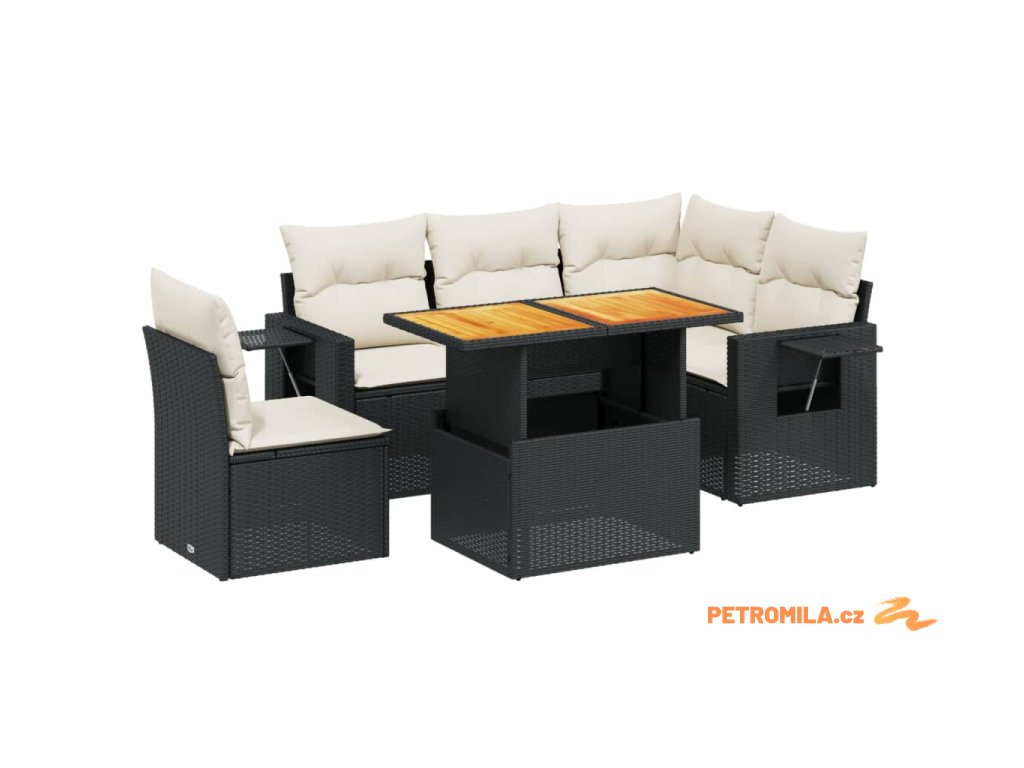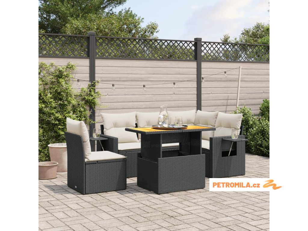 6dílná zahradní sedací souprava s poduškami černá polyratan