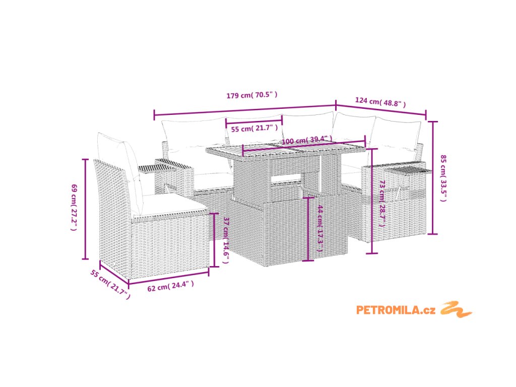 Tato zahradní sedací souprava je dokonalým doplňkem vaší zahrady, terasy nebo dvorku a poskytne vám pohodlné a příjemné místo, kde si můžete povídat s rodinou a přáteli nebo jen tak odpočívat a užívat si pobyt venku.