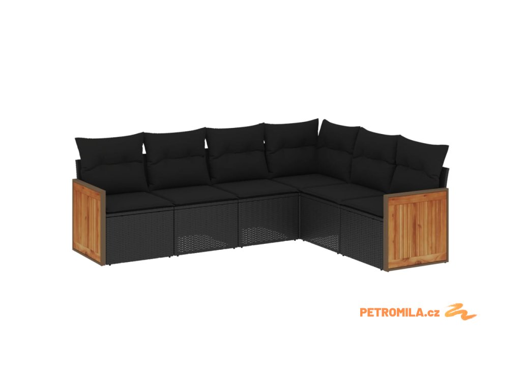 6dílná zahradní sedací souprava s poduškami černá polyratan