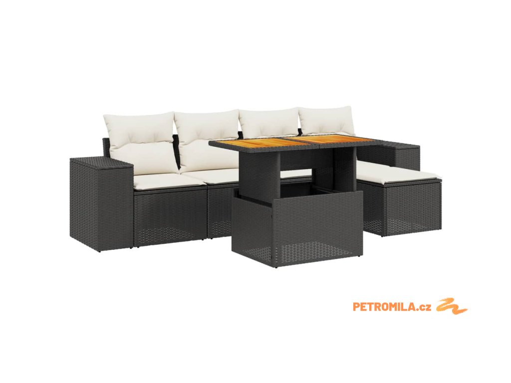 6dílná zahradní sedací souprava s poduškami černá polyratan