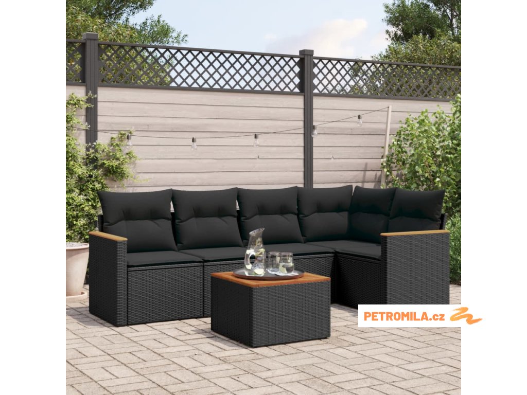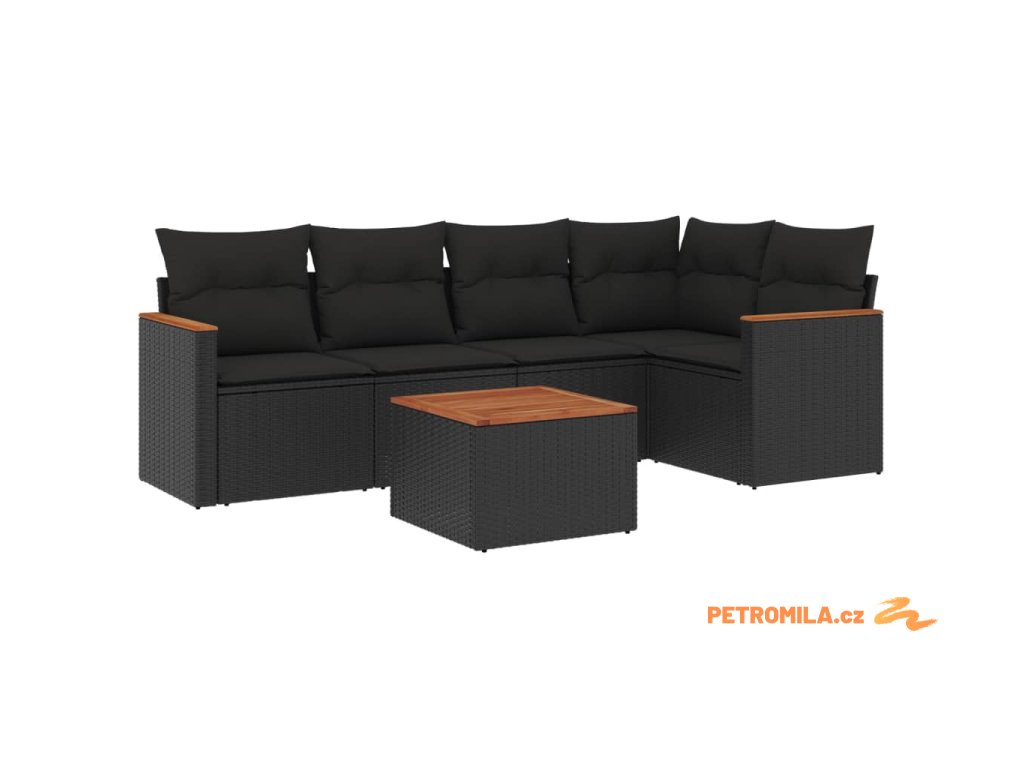 6dílná zahradní sedací souprava s poduškami černá polyratan