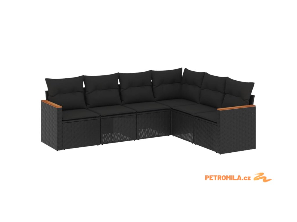 6dílná zahradní sedací souprava s poduškami černá polyratan