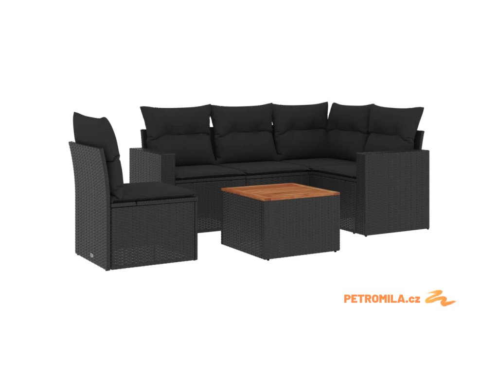 6dílná zahradní sedací souprava s poduškami černá polyratan
