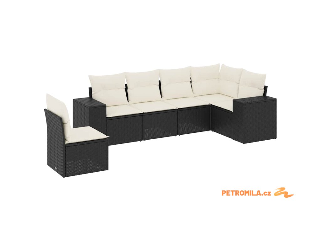 6dílná zahradní sedací souprava s poduškami černá polyratan