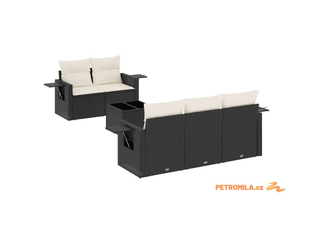 6dílná zahradní sedací souprava s poduškami černá polyratan