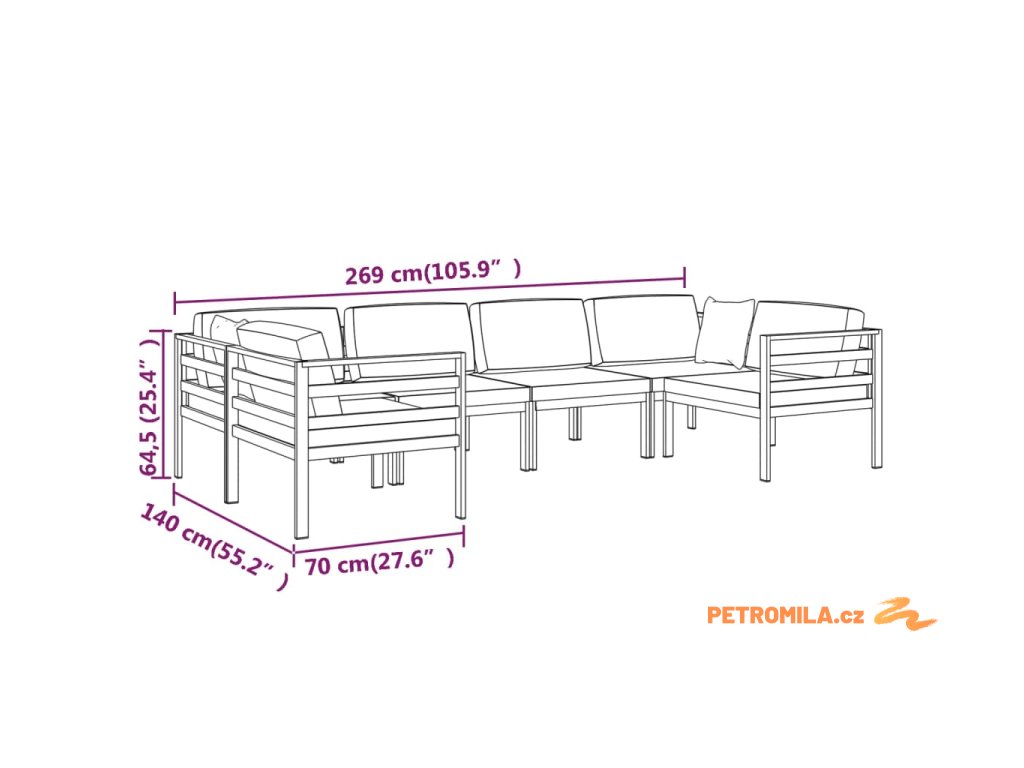 6dílná zahradní sedací souprava s poduškami hliník antracitová