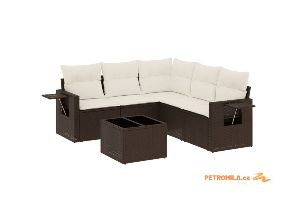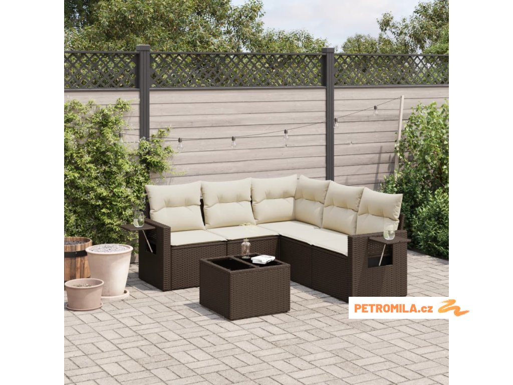 6dílná zahradní sedací souprava s poduškami hnědá polyratan