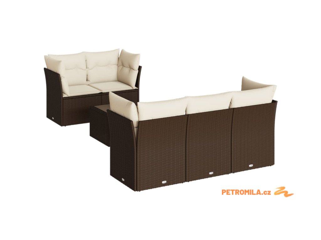 6dílná zahradní sedací souprava s poduškami hnědá polyratan