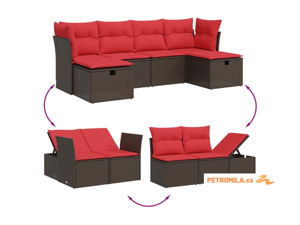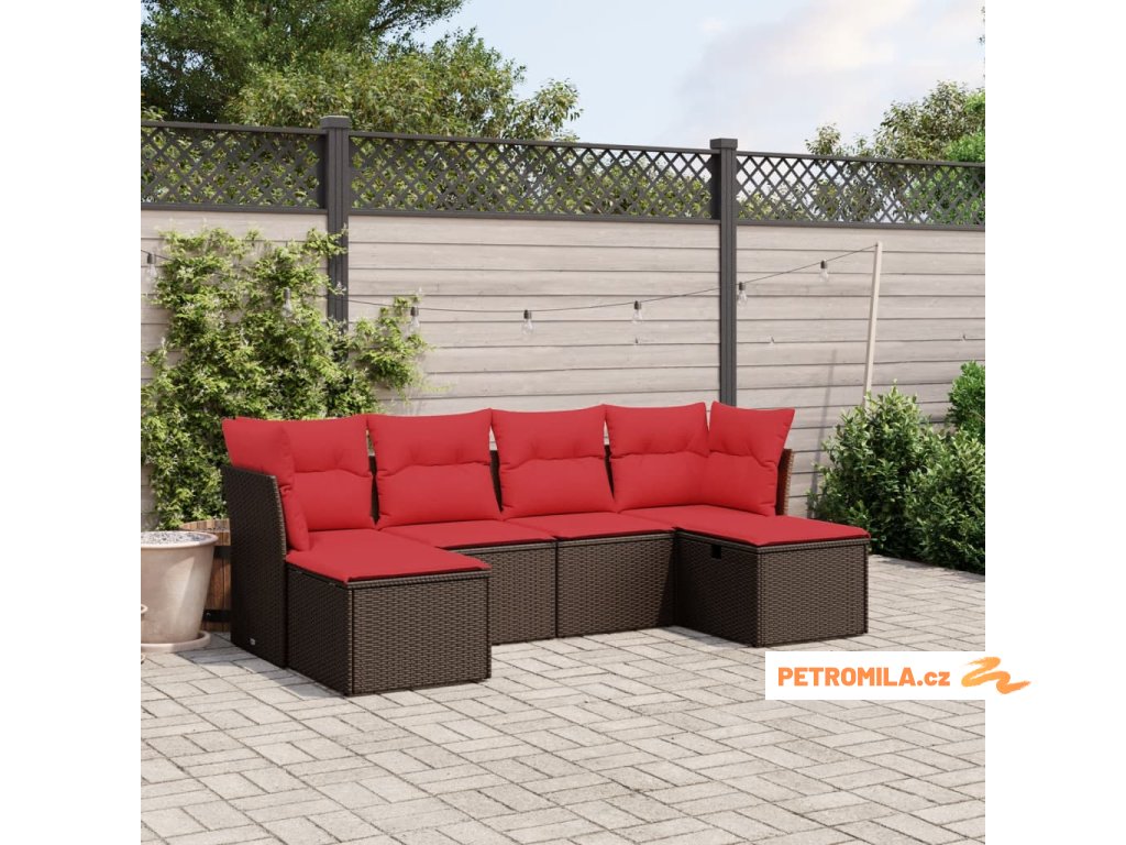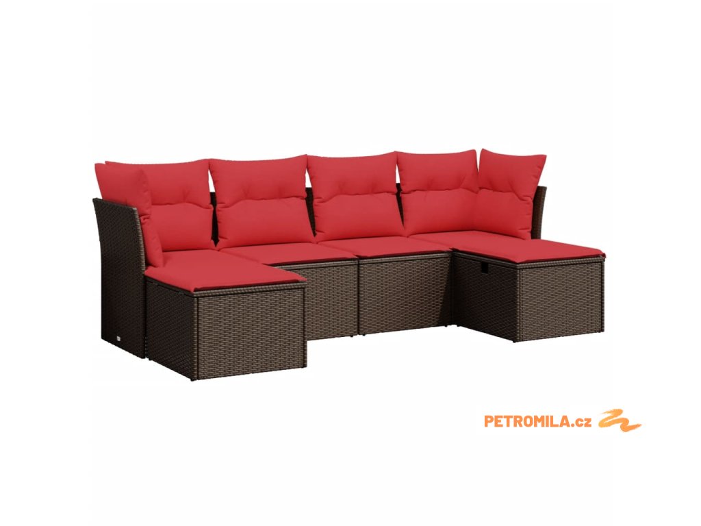 6dílná zahradní sedací souprava s poduškami hnědá polyratan
