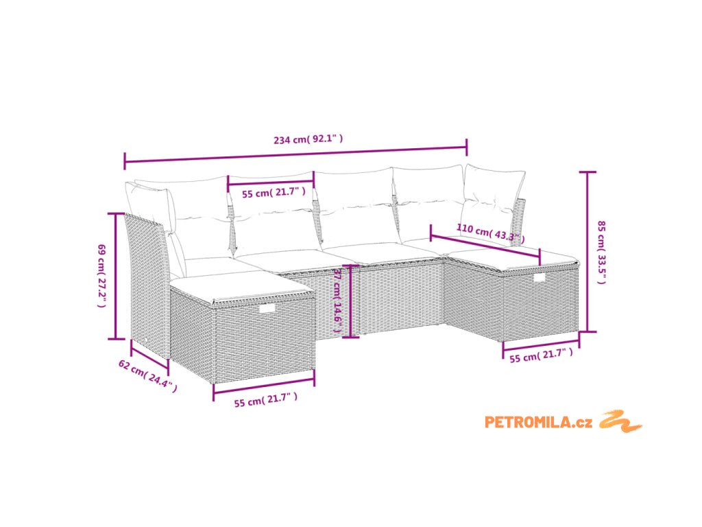 Tato zahradní sedací souprava je dokonalým doplňkem vaší zahrady, terasy nebo dvorku a poskytne vám pohodlné a příjemné místo, kde si můžete povídat s rodinou a přáteli nebo jen tak odpočívat a užívat si pobyt venku.
