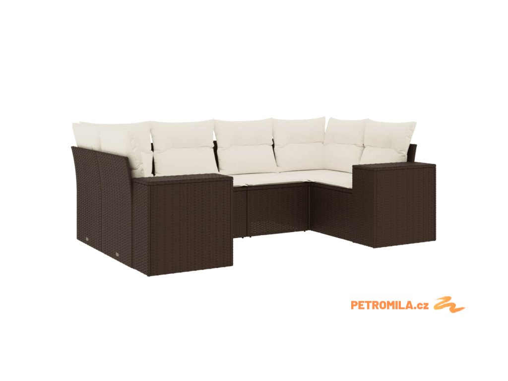 6dílná zahradní sedací souprava s poduškami hnědá polyratan