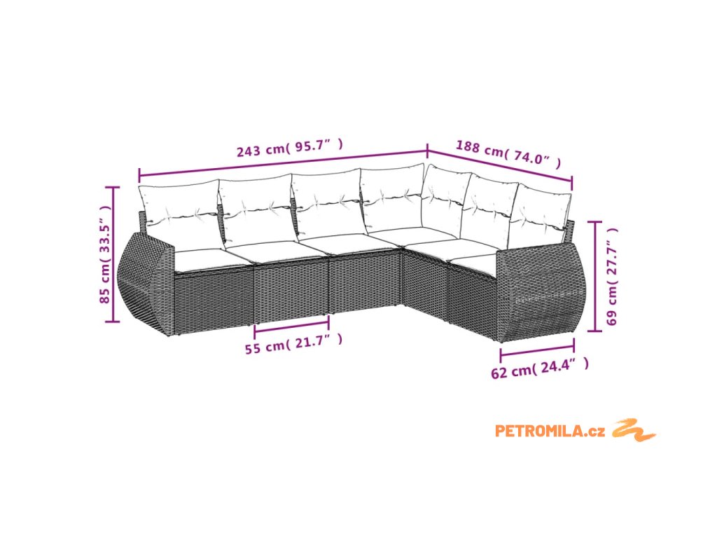 6dílná zahradní sedací souprava s poduškami hnědá polyratan