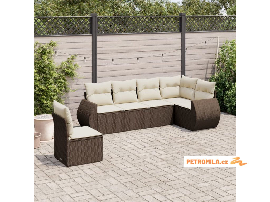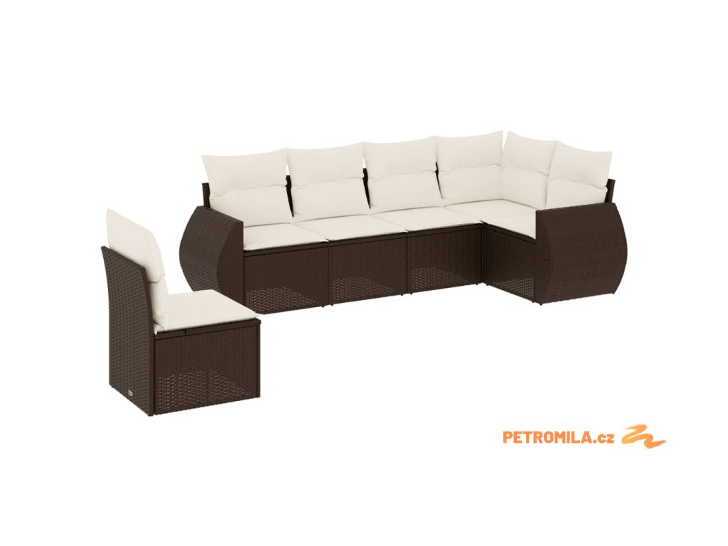 6dílná zahradní sedací souprava s poduškami hnědá polyratan