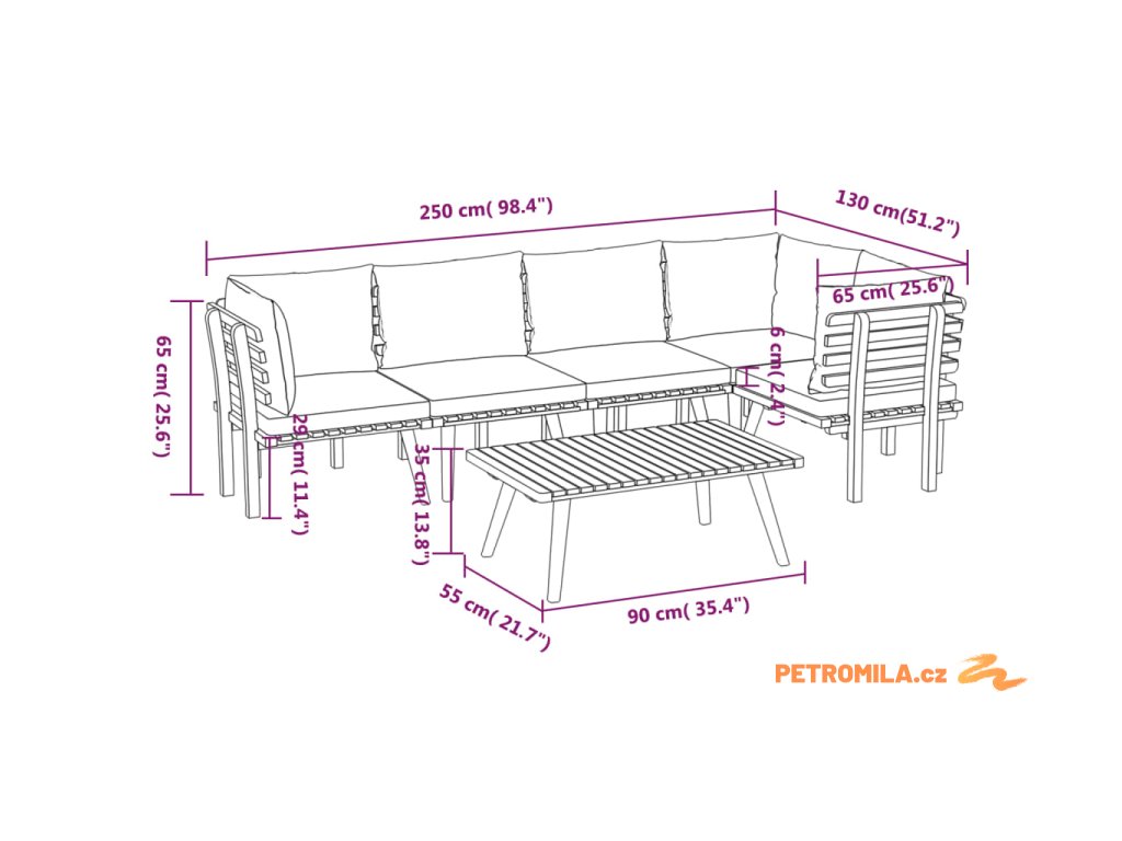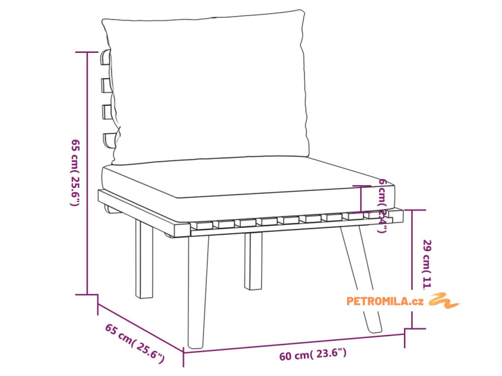 - Rozměry středové pohovky: 60 x 65 x 65 cm (Š x H x V)
