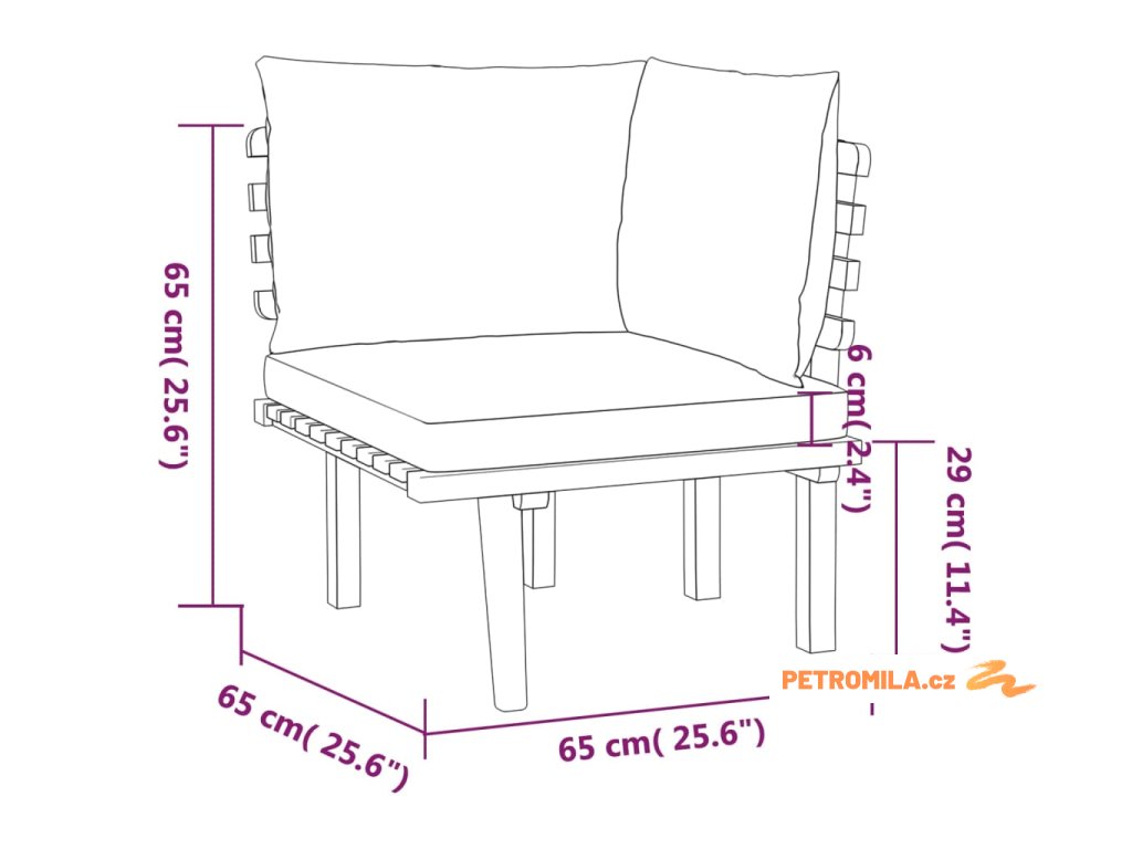 - Rozměry rohové pohovky: 65 x 65 x 65 cm (Š x H x V)