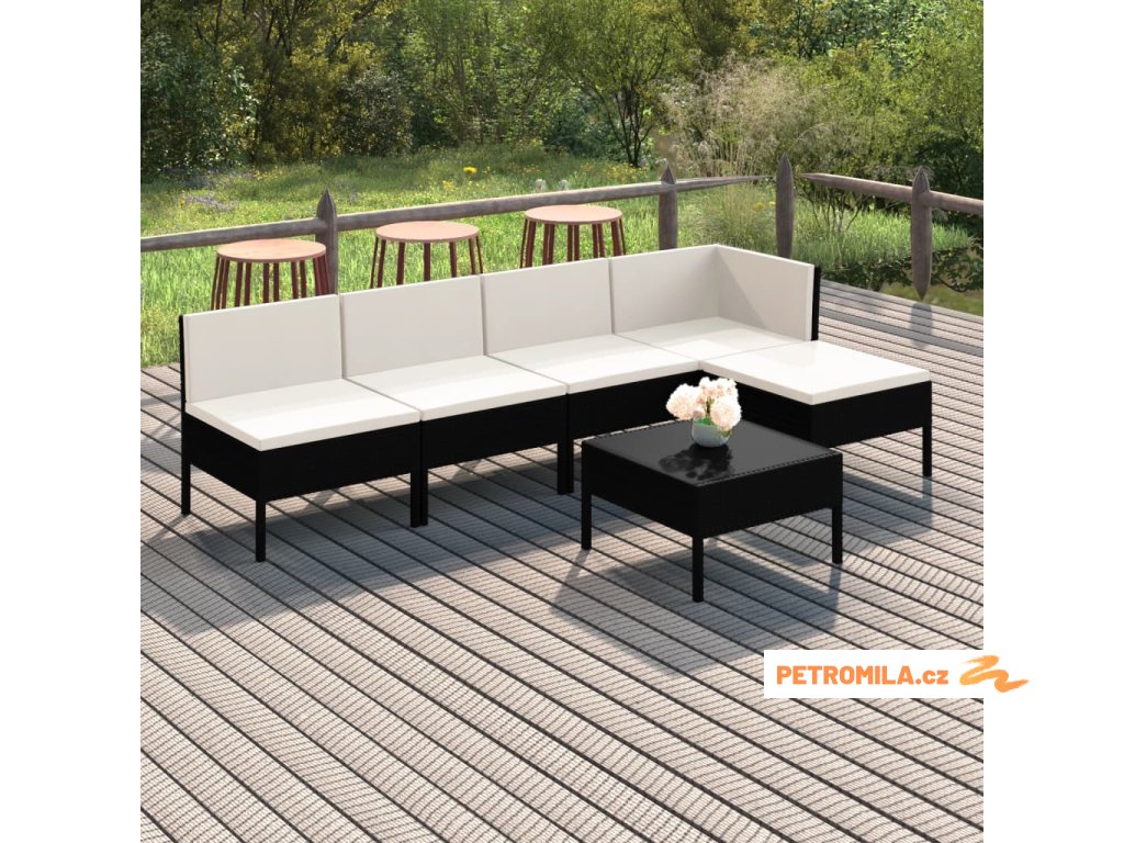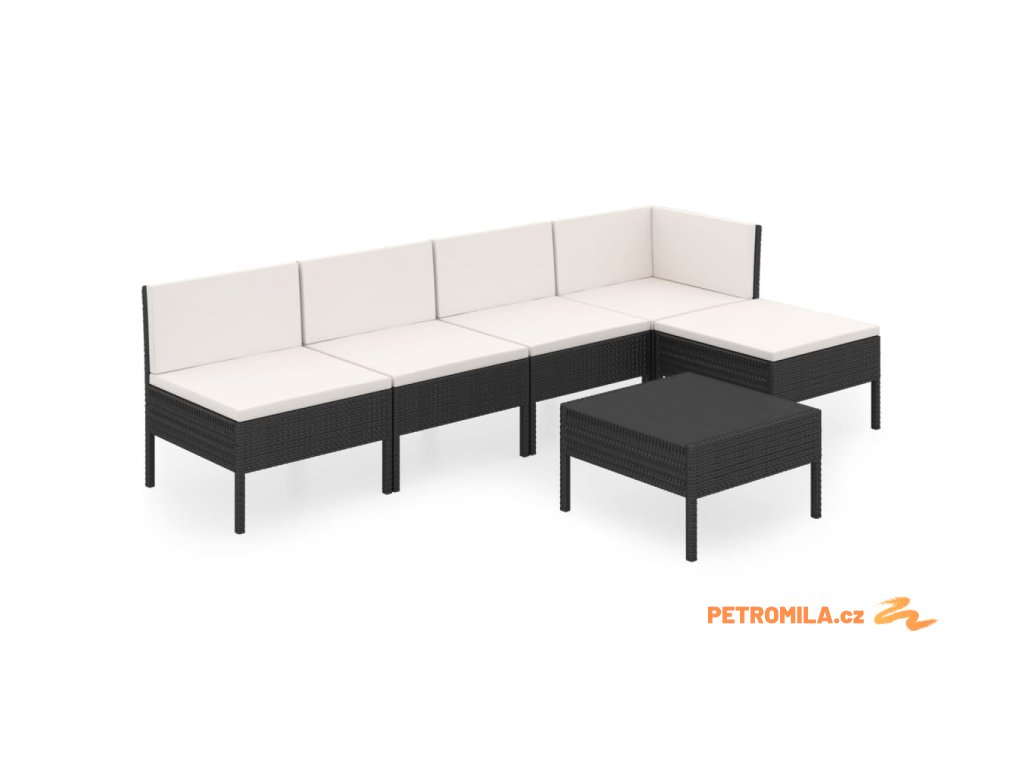 6dílná zahradní sedací souprava s poduškami polyratan černá