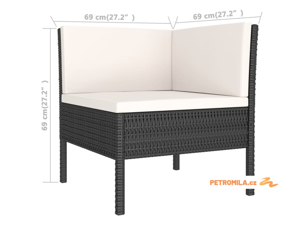 - Rozměry rohové pohovky: 69 x 69 x 69 cm (Š x H x V)