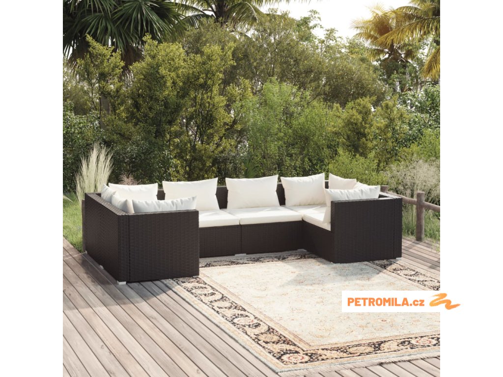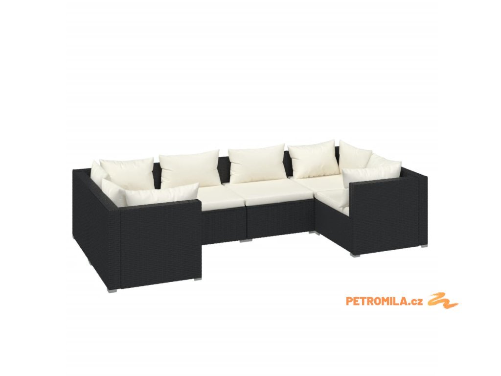 6dílná zahradní sedací souprava s poduškami polyratan černá