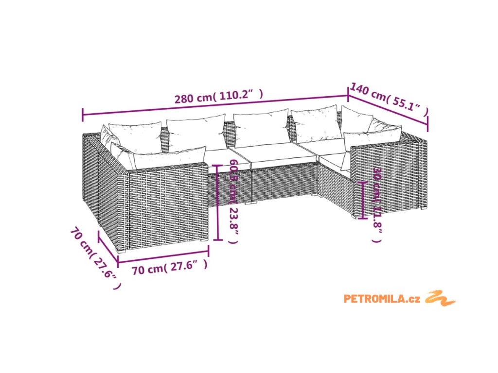 - Rozměry podušky na sedák: 70 x 63 x 6 cm (D x Š x T)