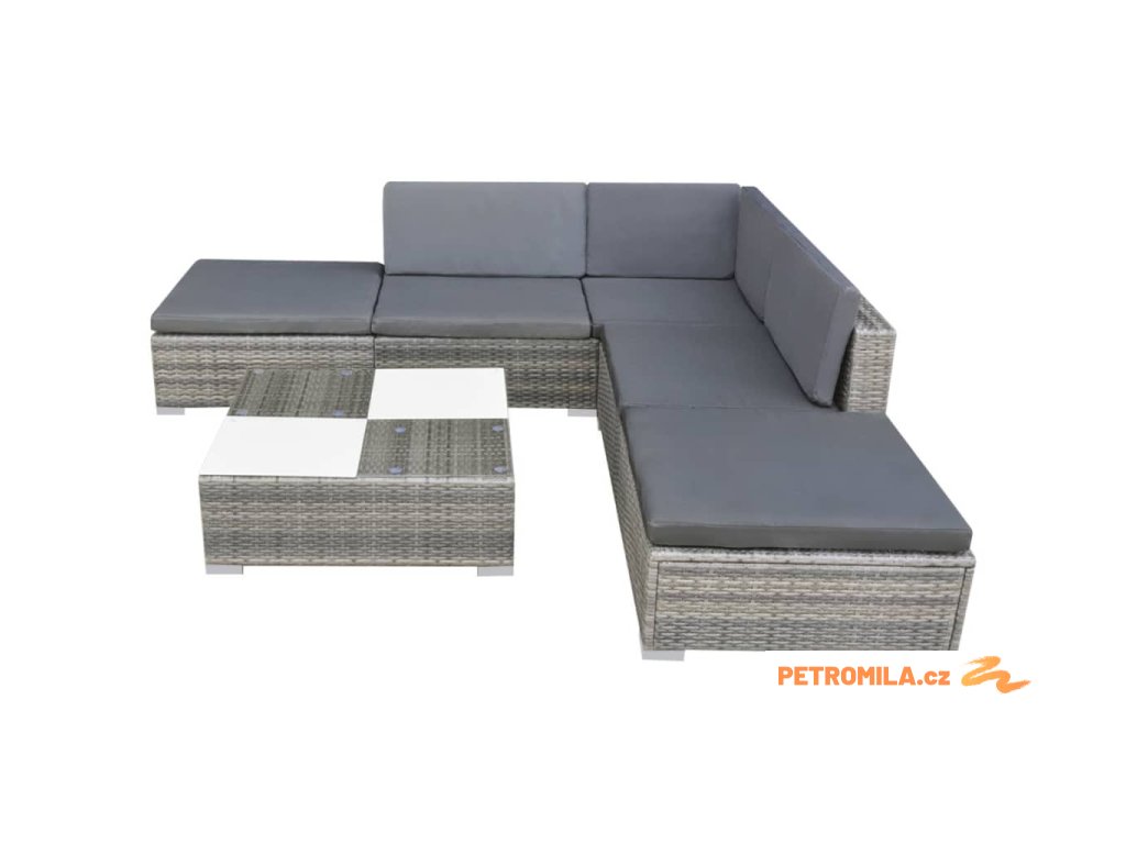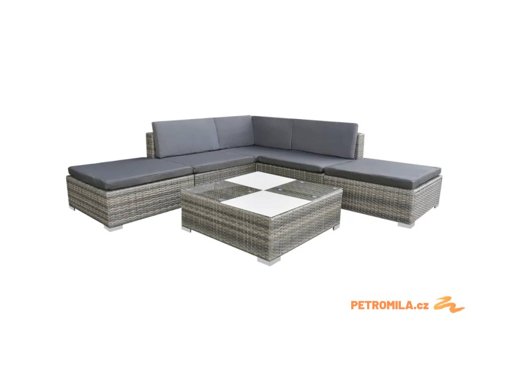 6dílná zahradní sedací souprava s poduškami polyratan šedá