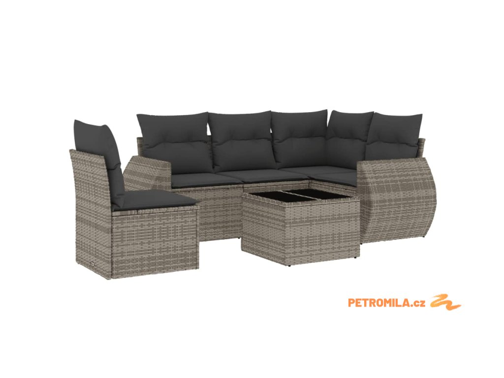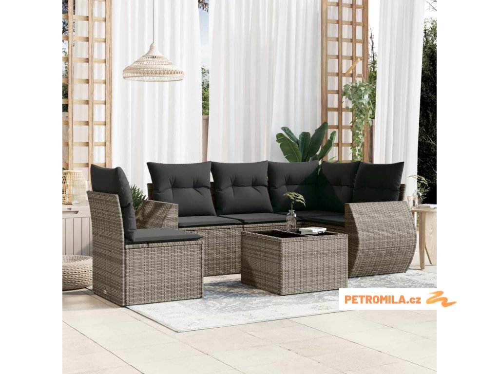 6dílná zahradní sedací souprava s poduškami šedá polyratan