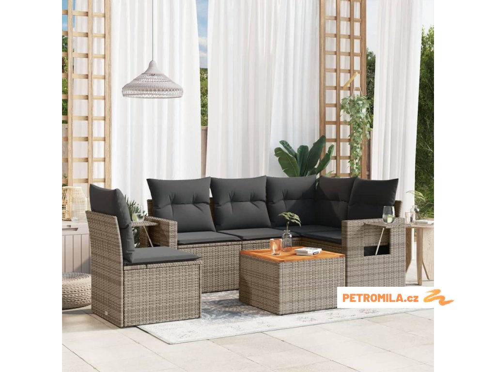 6dílná zahradní sedací souprava s poduškami šedá polyratan