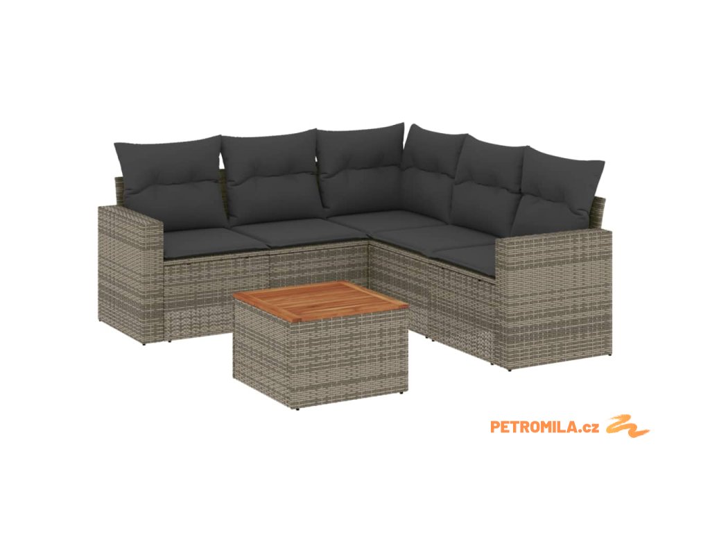 6dílná zahradní sedací souprava s poduškami šedá polyratan