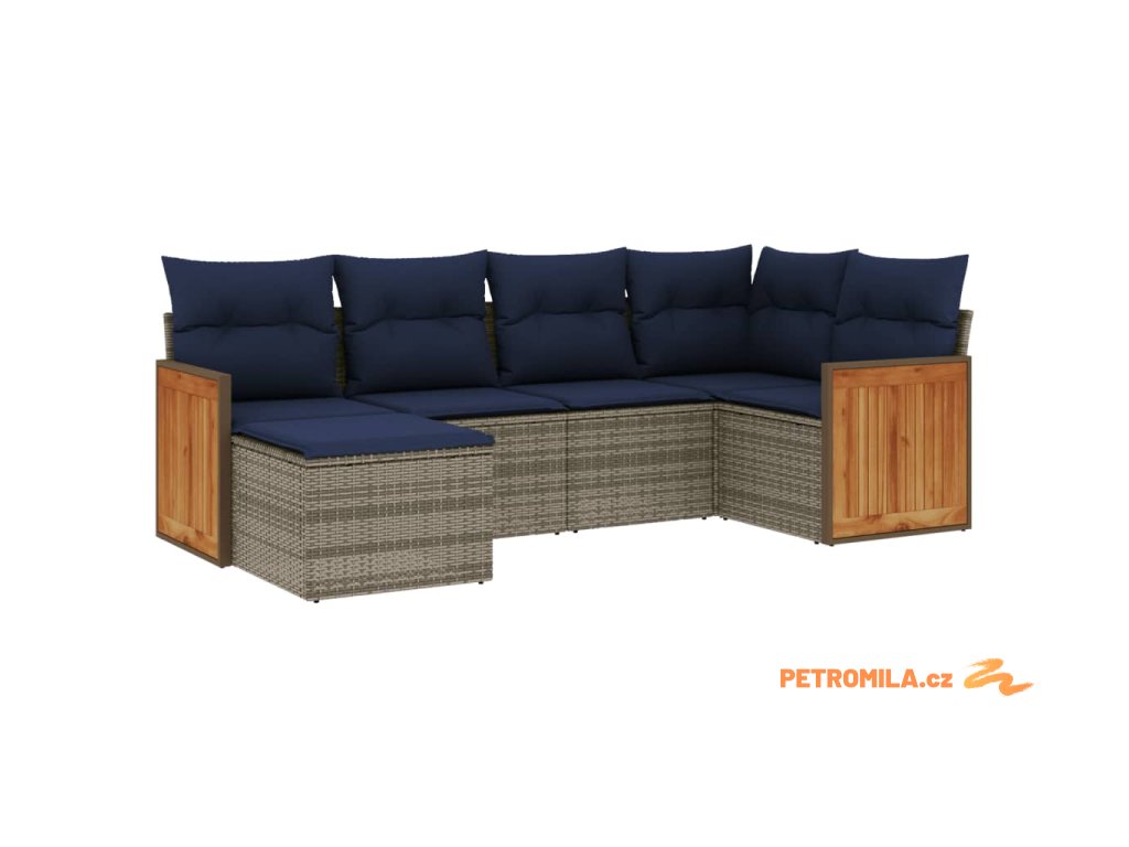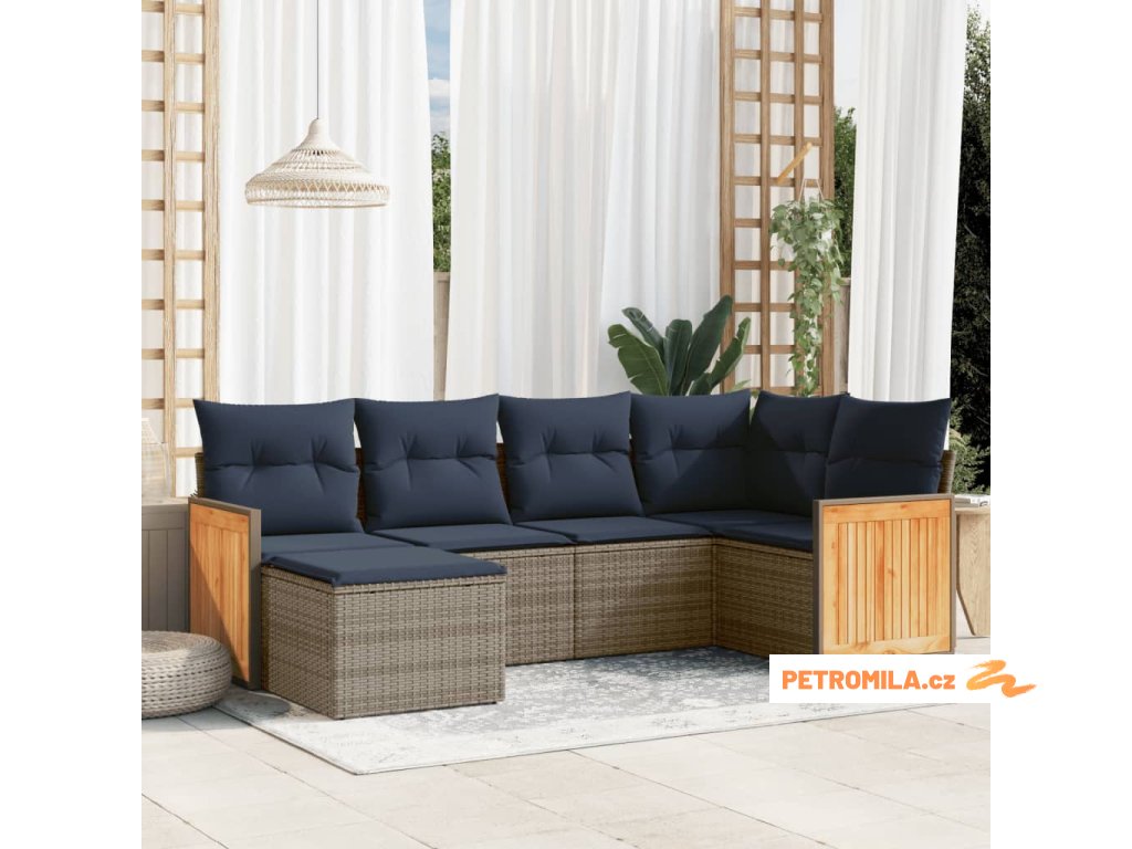 6dílná zahradní sedací souprava s poduškami šedá polyratan