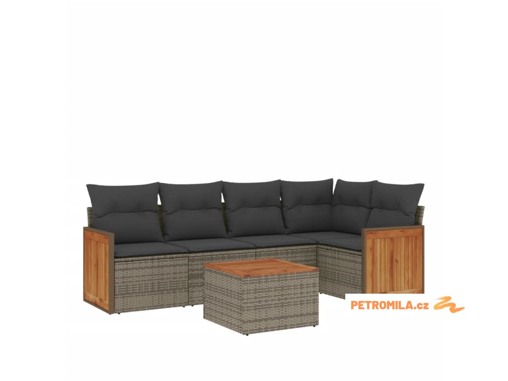 6dílná zahradní sedací souprava s poduškami šedá polyratan