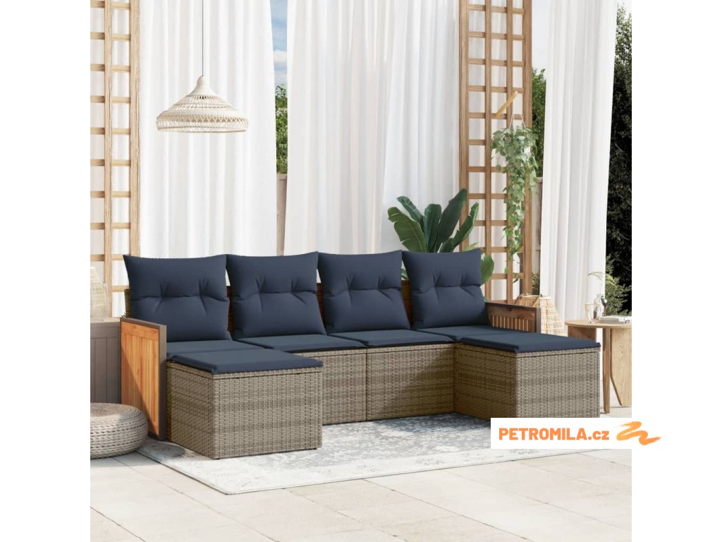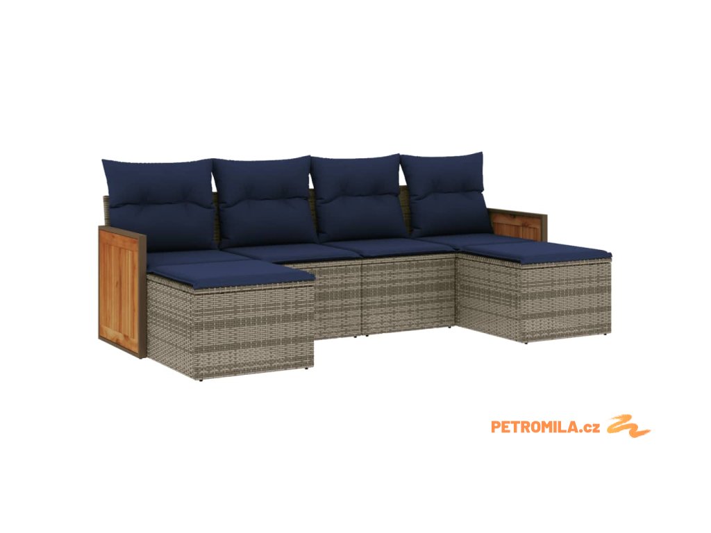6dílná zahradní sedací souprava s poduškami šedá polyratan