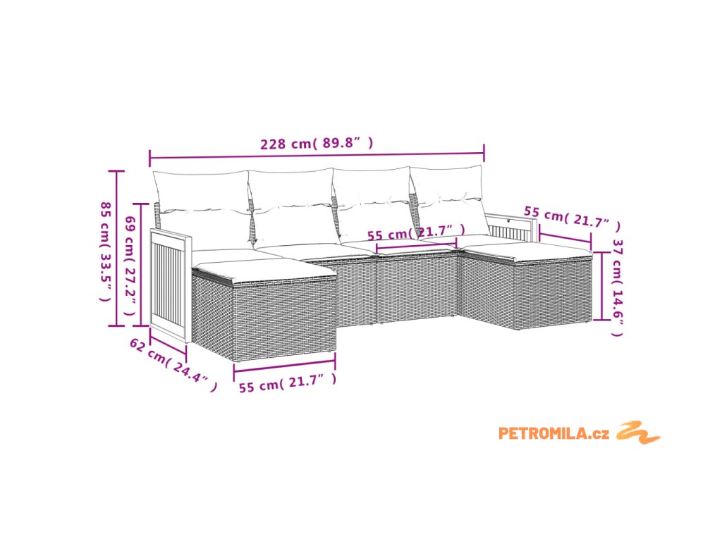 - 6x poduška na sedák s odnímatelným a omyvatelným potahem