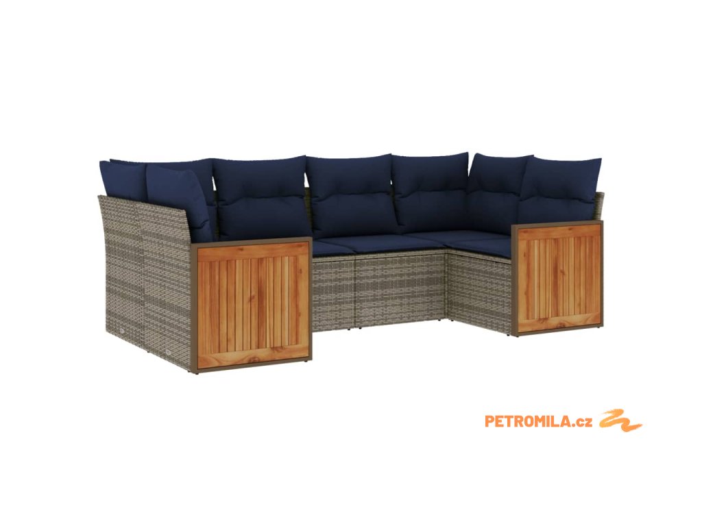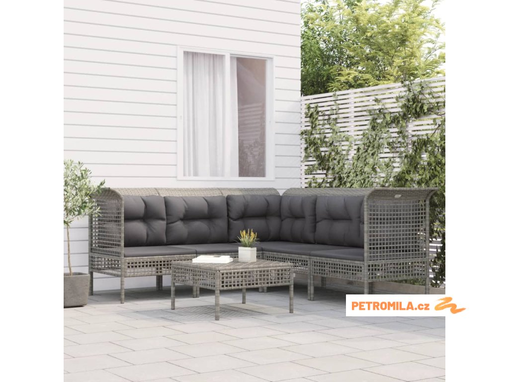 6dílná zahradní sedací souprava s poduškami šedá polyratan
