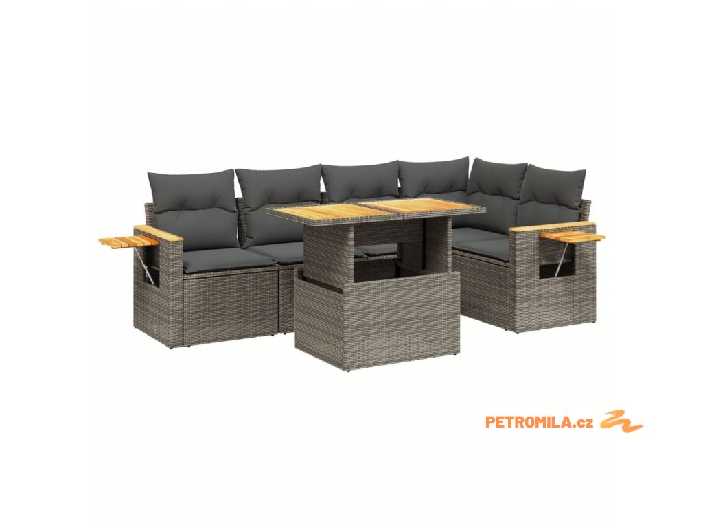 6dílná zahradní sedací souprava s poduškami šedá polyratan