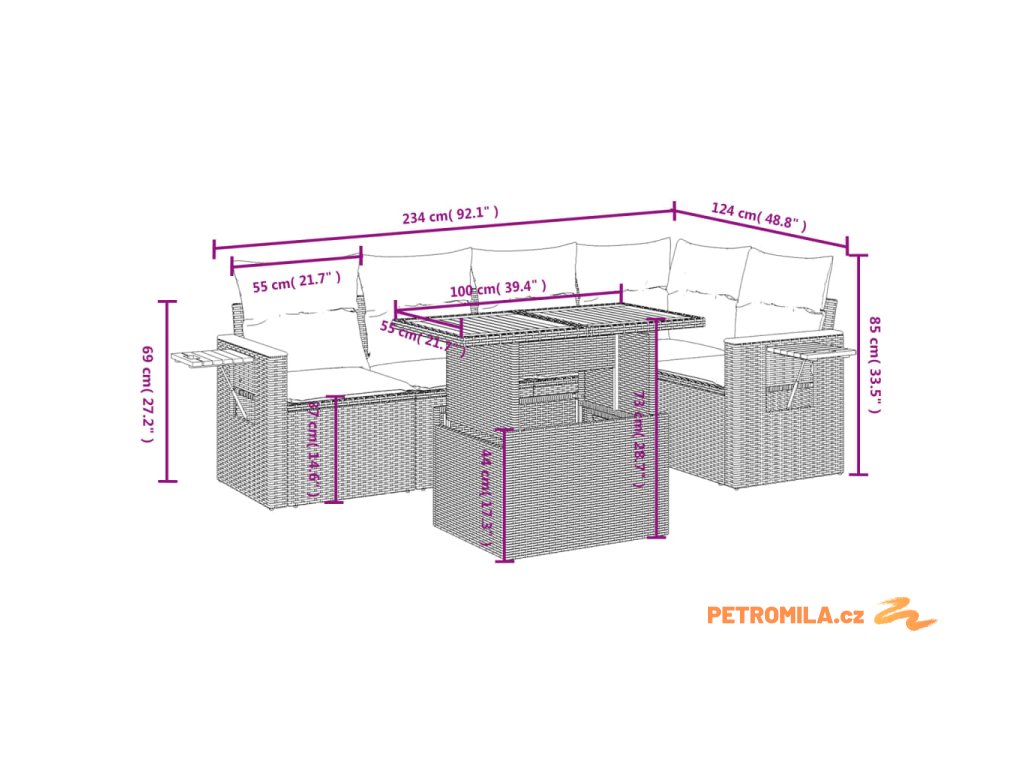 Tato zahradní sedací souprava je dokonalým doplňkem vaší zahrady, terasy nebo dvorku a poskytne vám pohodlné a příjemné místo, kde si můžete povídat s rodinou a přáteli nebo jen tak odpočívat a užívat si pobyt venku.